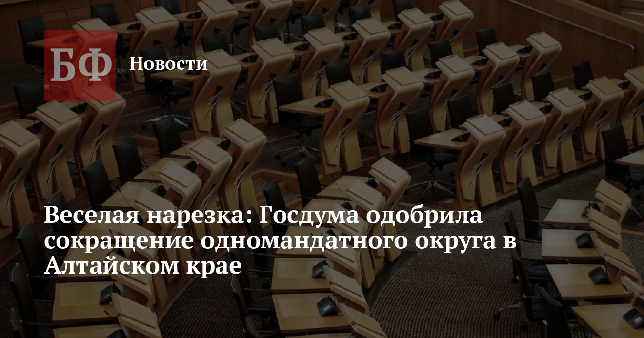 14 мая депутаты Госдумы единогласно (350 «за») приняли законопроект об утверждении схемы одномандатных округов для проведения выборов депутатов нижней палаты парламента. В соответствии с этим Алтайский край официально лишился одного из четырех думских мандатов в следующем созыве.