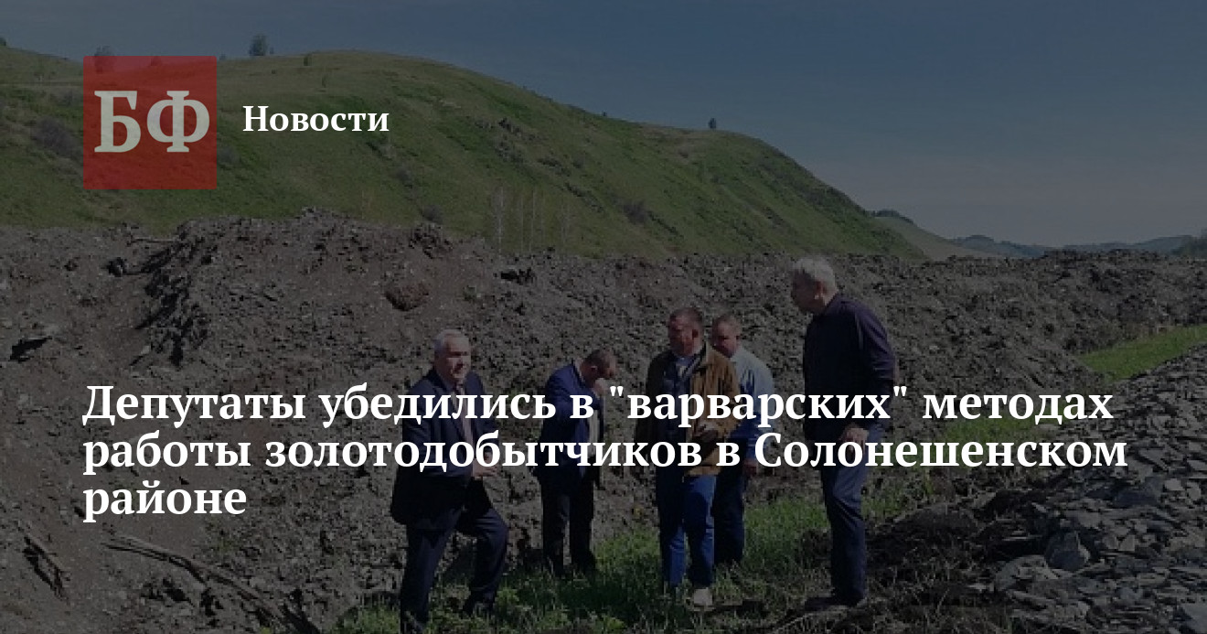 15 мая депутаты Алтайского Заксобрания Сергей Серов и Владимир Лещенко посетили Солонешенский район, чтобы оценить последствия деятельности новосибирского ООО «Артель Солнечная». Осмотр показал, что при проведении работ добытчики золота полностью нарушили технологический процесс, сообщает пресс-служба регионального парламента.