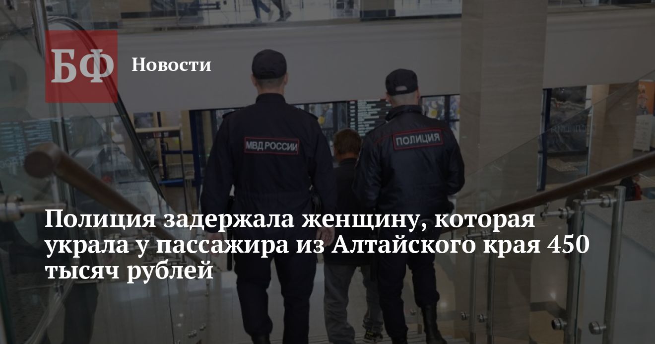 Правоохранители задержали подозреваемую в краже наличных средств в аэропорту Шереметьево у пассажира из Алтайского края. Как сообщило «МВД медиа» 19 мая, женщина похитила 450 тысяч рублей. Полиция возбудила против нее уголовное дело.