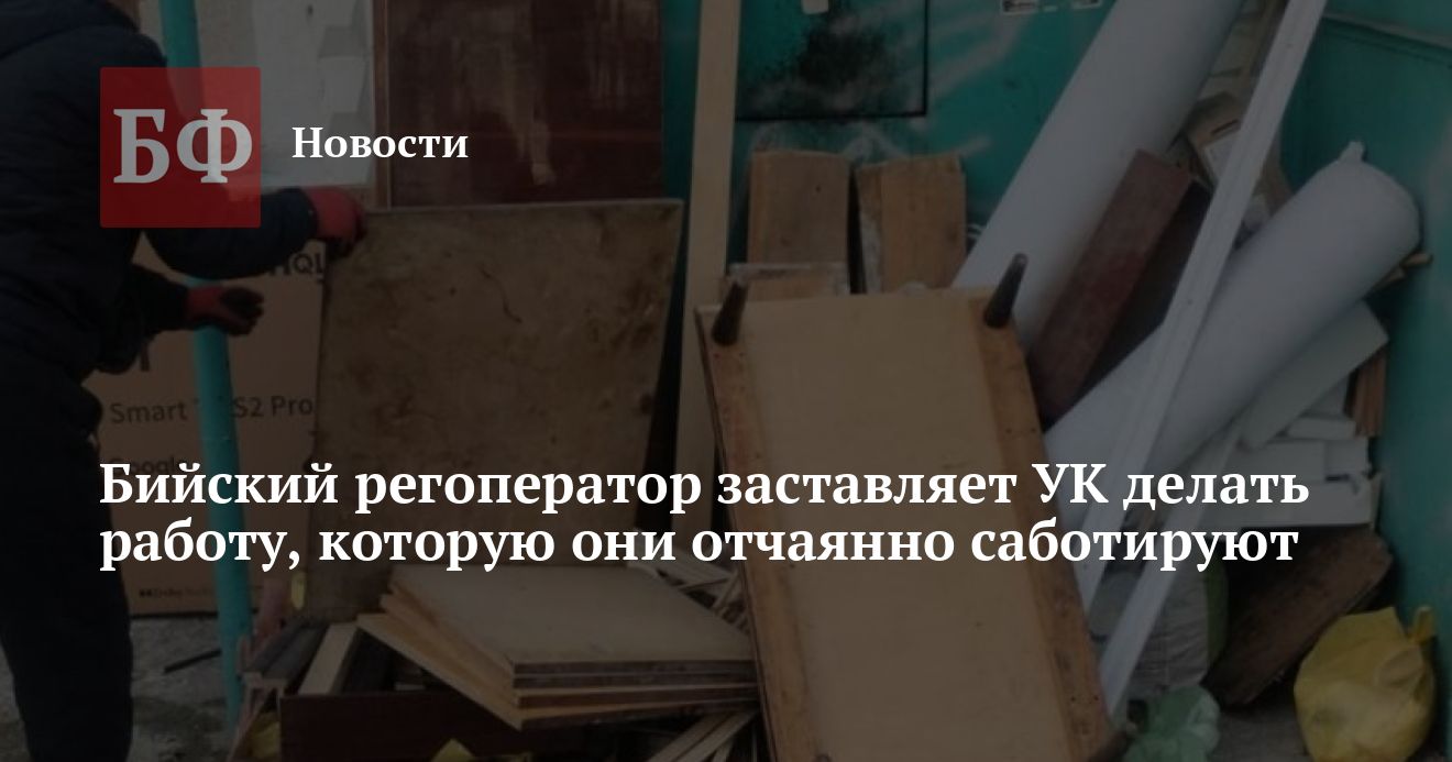 В Седьмом арбитражном апелляционном суде устояло решение Арбитражного суда Алтайского края, которым одну из бийских УК обязывают выкатывать контейнеры из мусороприемных шахт домов перед погрузкой в мусоровозы. Этого на протяжении четырех лет добивается региональный оператор по обращению с ТКО в Бийской зоне — ООО «Спецобслуживание плюс». Сейчас сотрудники компании сами вынуждены выкатывать баки, разгребая на пути завалы из крупногабаритного мусора, а управляющие компании во всем наукограде саботируют данную работу.