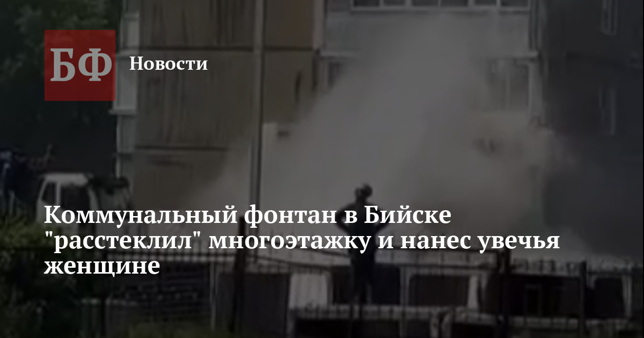 Жители Бийска сообщили, что 29 мая днем на улице Мухачева в результате гидравлических испытаний произошел порыв на сетях теплоснабжения. По словам горожан, из трубы начал бить фонтан, который вынес стекла в соседней многоэтажке, информирует Тelegram-канал «Бийск — мой город». Кроме того, в результате ЧП пострадала находившаяся в тот момент на балконе женщина. В компании СГК факт случившегося подтвердили и пообещали возместить ущерб.