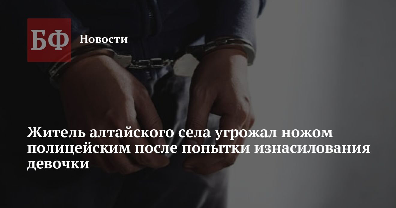 Полиция задержала жителя Кытмановского района, который попытался изнасиловать несовершеннолетнюю дочь соседа. Мужчина напал на девочку, когда та пошла в баню. Его остановил отец подростка. В пресс-службе ГУ МВД России по Алтайскому краю 31 мая сообщили, что нападавший попытался оказать сопротивление полицейским с помощью ножа, один из правоохранителей ранил его в ногу из оружия, после чего злоумышленника задержали.