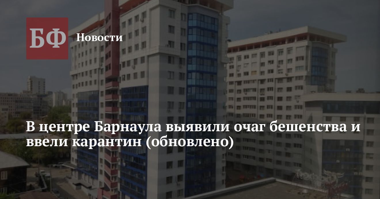 29 мая глава Алтайского края подписал указ о введении карантина в связи с заболеваемостью бешенством из-за вспышки на территории 16-этажного жилого дома на Никитина, 107 в Барнауле. Прилегающая к эпизоотическому очагу территория в радиусе 520 м определена неблагополучным пунктом по бешенству. В этой зоне установили карантин.
