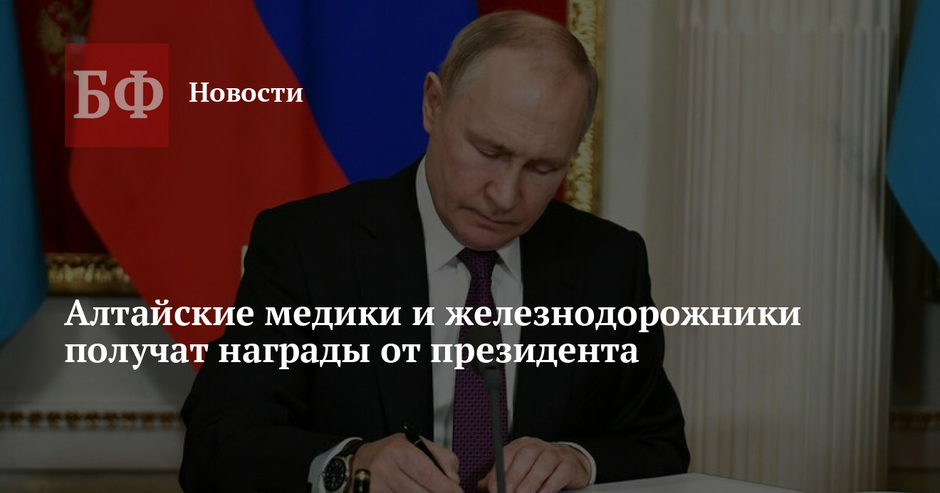 Президент России Владимир Путин подписал указ о присвоении государственных наград нескольким жителям Алтайского края. Поощрения от главы государства были удостоены сотрудники алтайских медучреждений и работники железной дороги.
