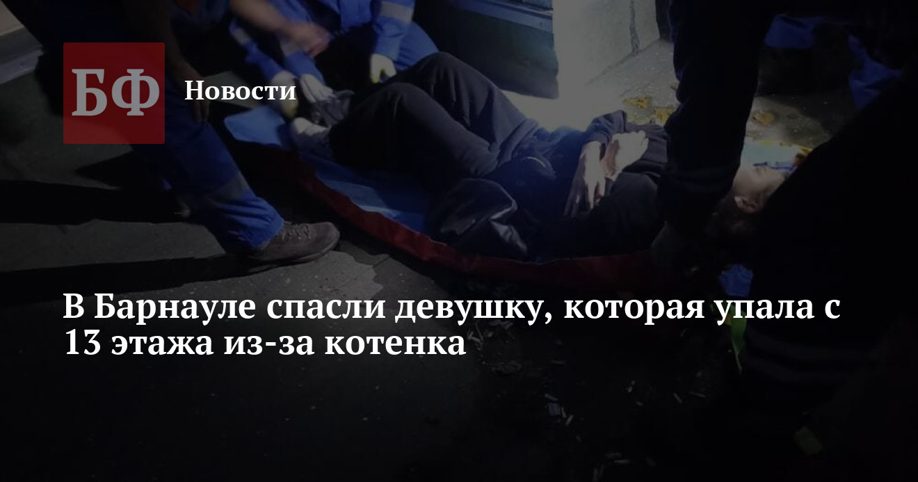 Инцидент произошел около 03:00 на улице Путиловской. В тот момент 19-летняя девушка пыталась спасти своего котенка, который застрял на балконе 13 этажа, но сорвалась и упала на крышу 10 этажа. Сразу же были вызваны скорая помощь и полиция, но доступ к пострадавшей был затруднен. На место прибыли спасатели управления Алтайского края по делам ГОЧС и ПБ.