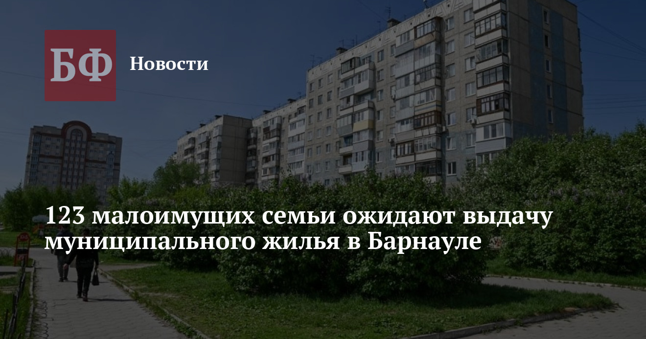 В Барнауле проживает 123 семьи, которые признаны малоимущими и поставлены на учет для выдачи муниципального жилья. Как сообщила администрация города в ответе на запрос ИА «Банкфакс», для улучшения жилищных условий всех нуждающихся необходимо более 480 млн рублей. Планируется ежегодно расселять не менее 11 семей.