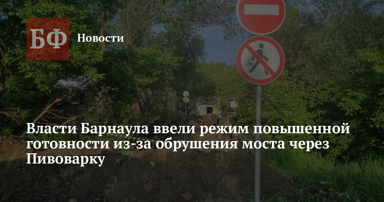 9 июня после продолжительного и мощного ливня в Барнауле подмыло переправу через реку Пивоварка. В результате часть моста обрушилась, рассказали горожане в сообществе «Инцидент Барнаул». Вечером того же дня на место выехали представители администрации Железнодорожного района Барнаула, которые после осмотра приняли решение ввести режим повышенной готовности.