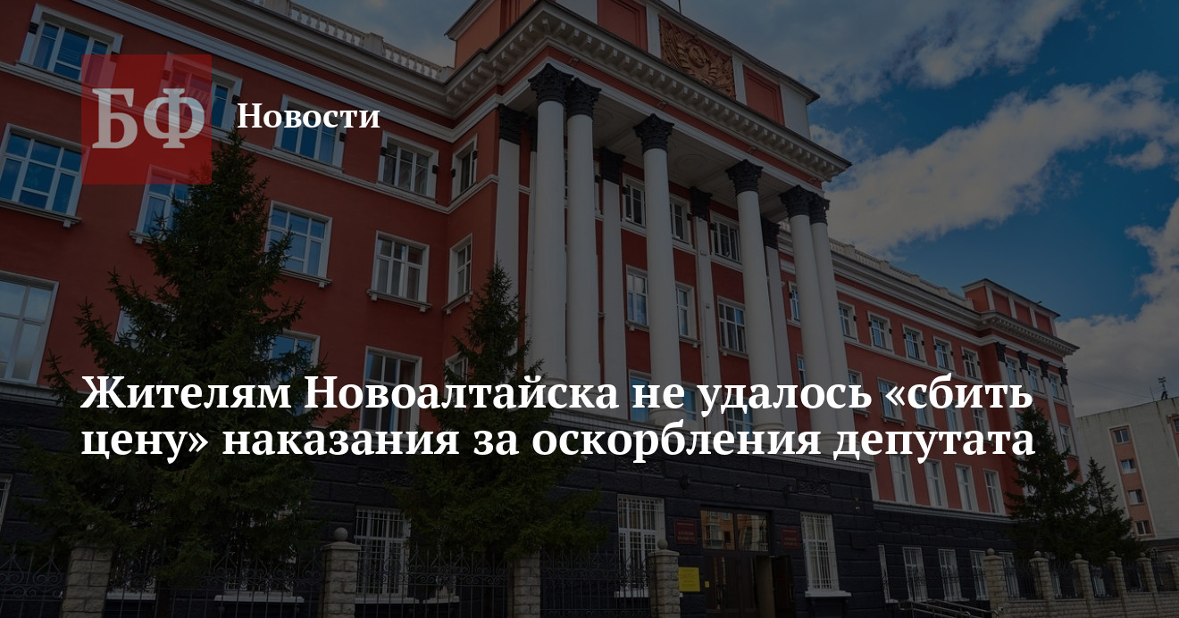 Жители Новоалтайска Станислав Гарнец и Иван Харинов не смогли оспорить в апелляции размер компенсации морального вреда в пользу депутата Алтайского Заксобрания Людмилы Клюшниковой. Ранее суд постановил, что они должны заплатить ей за оскорбления по 15 тысяч рублей каждый, но мужчины были с этим не согласны. Апелляционная инстанция оставила решение без изменений, следует из карточки дела.