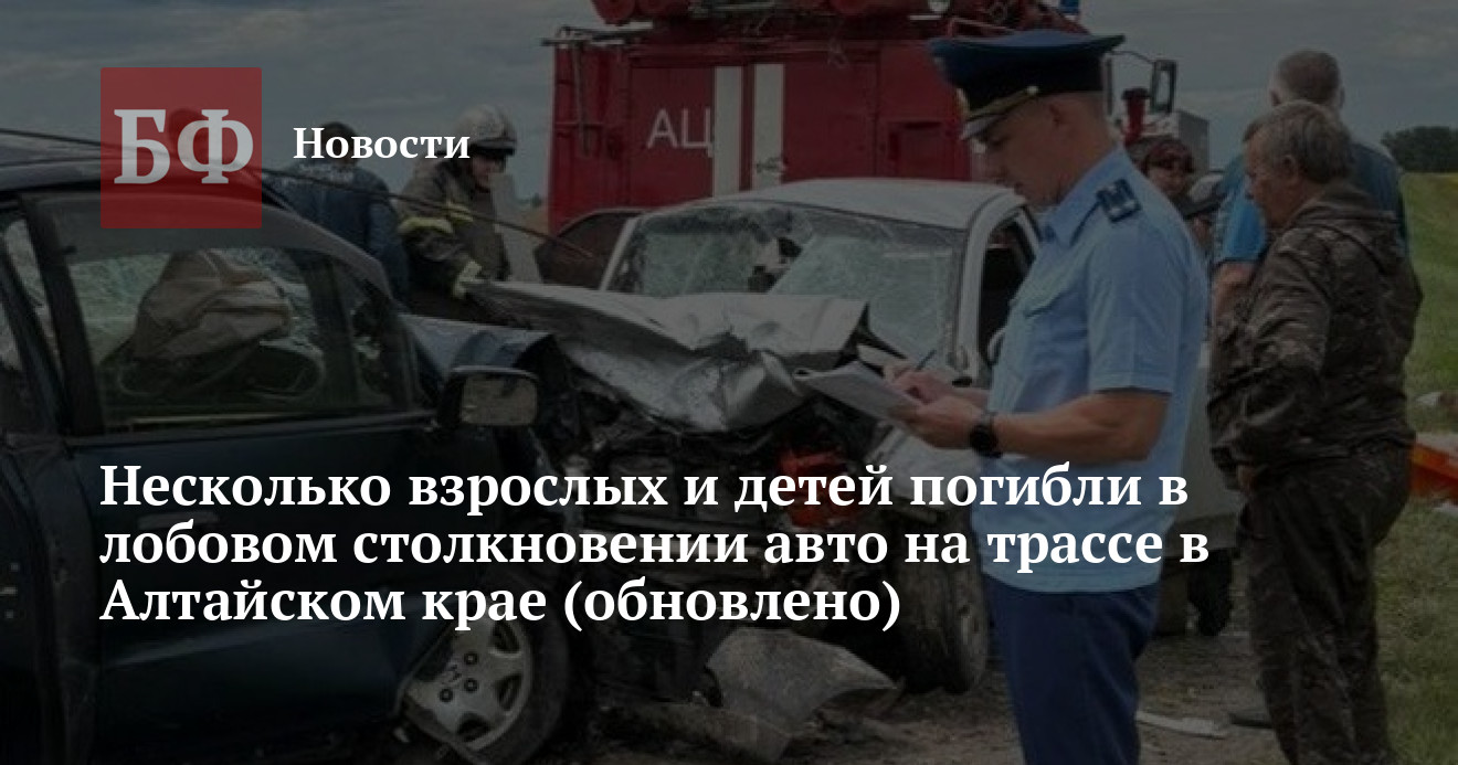 UPD 15:30: по факту ДТП с погибшими возбуждено уголовное дело по ч. 5 ст. 264 УК РФ (нарушение лицом, управляющим автомобилем, правил дорожного движения или эксплуатации транспортных средств, повлекшее по неосторожности смерть двух или более лиц). Расследование находится на контроле начальника ГУ МВД России по Алтайскому краю Сергея Камышева. Назначен ряд необходимых экспертиз и исследований. На месте работают экстренные службы. По уточненным данным, в аварии погибло шесть человек, в том числе трое детей.