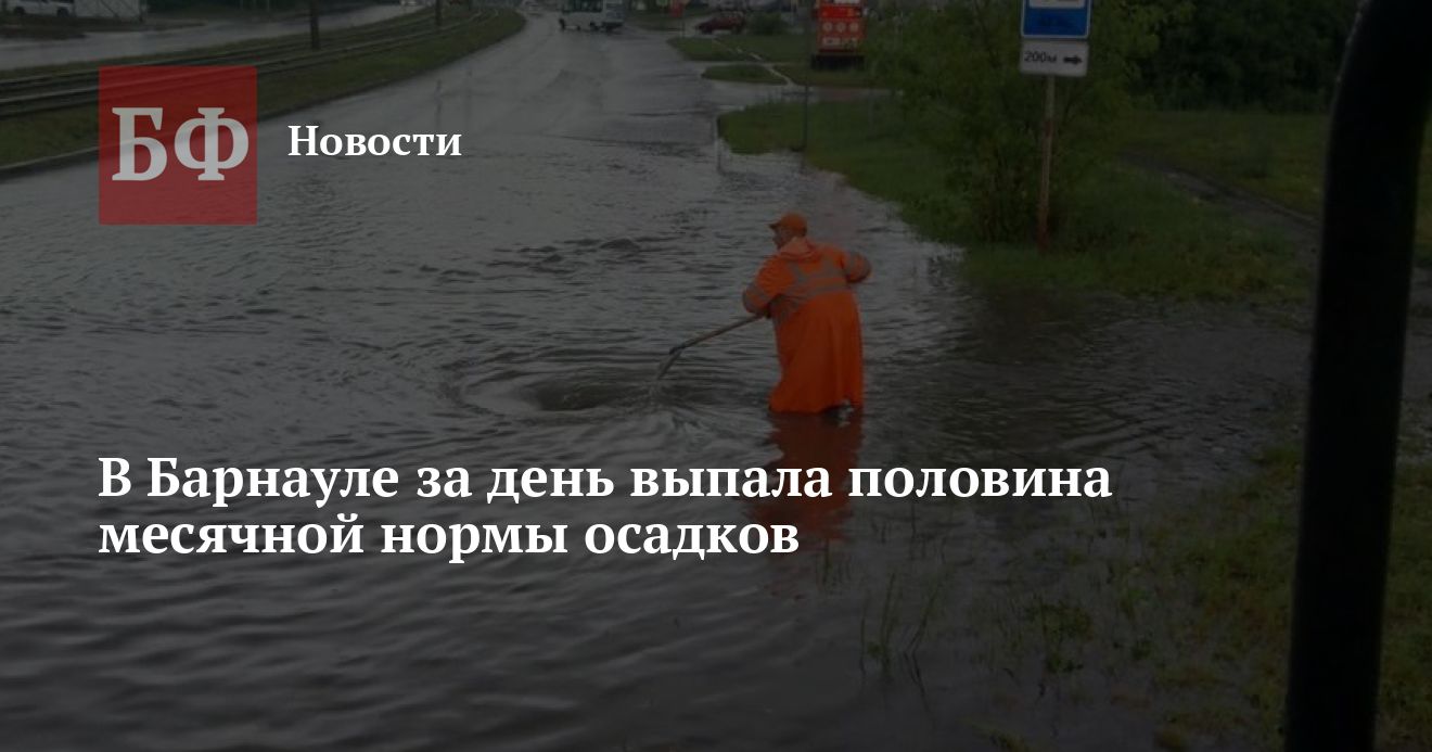 Напомним, 9 июня в Барнауле также шел проливной дождь, благодаря которому за считанные часы выпала месячная июньская норма осадков - 53 мм осадков. В результате в Барнауле было зарегистрировано более 120 происшествий различного характера - это и отключение электроэнергии в семи случаях - в четырех поселках и на трех улицах города. Были случаи подтопления участков дорог, подвалов жилых домов, административных зданий. Из-за скопления дождевой воды было ограничено движение на нескольких участках дорог.