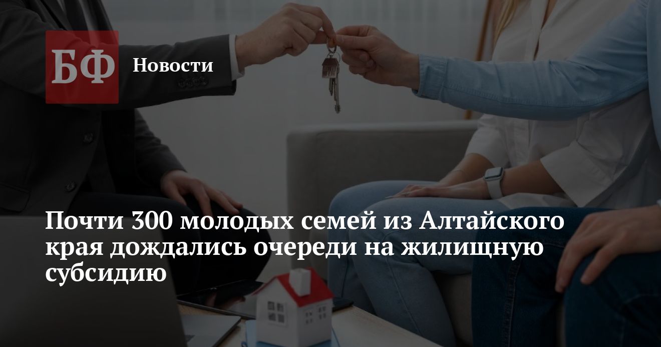Так, в 2025 году Алтайскому краю из федерального бюджета распределены средства в размере 114,9 млн рублей, краевого и местных – по 145 млн рублей, что позволило включить в список претендентов на получение социальной выплаты 299 молодых семей края (в 2024 году федерация выделила больше 140,1 млн рублей и потому были охвачены 322 молодые семьи). Также чиновница пояснила, что расчет объема этой социальной выплаты производится, исходя из размера общей площади жилья, количества членов молодой семьи и норматива стоимости 1 кв. м общей жилплощади по муниципальному образованию.