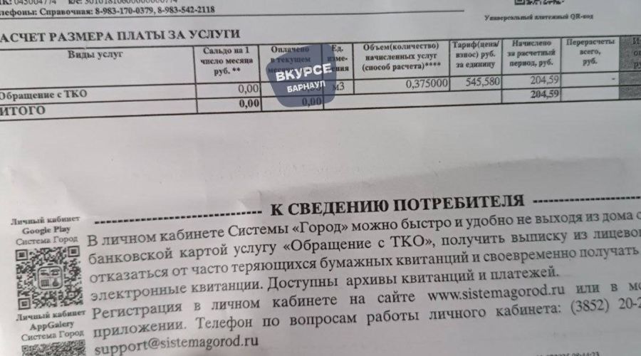 Отметим, что согласно данным из квитанции, региональным оператором, выставившим незаконные счета, значится ООО «ЭкоТранс», обслуживающее Алейскую и Славгородскую зоны. Ранее к нему уже возникали претензии со стороны жителей села Селекционное. Здесь мусор вывозили раз в неделю, и арбитражный суд счел это нарушением. В бездействии ООО «Экотранс» усмотрели состав административного правонарушения, ответственность за которое предусмотрена частью 1 ст. 7.23 КоАП РФ (нарушение нормативного режима предоставления коммунальных услуг).