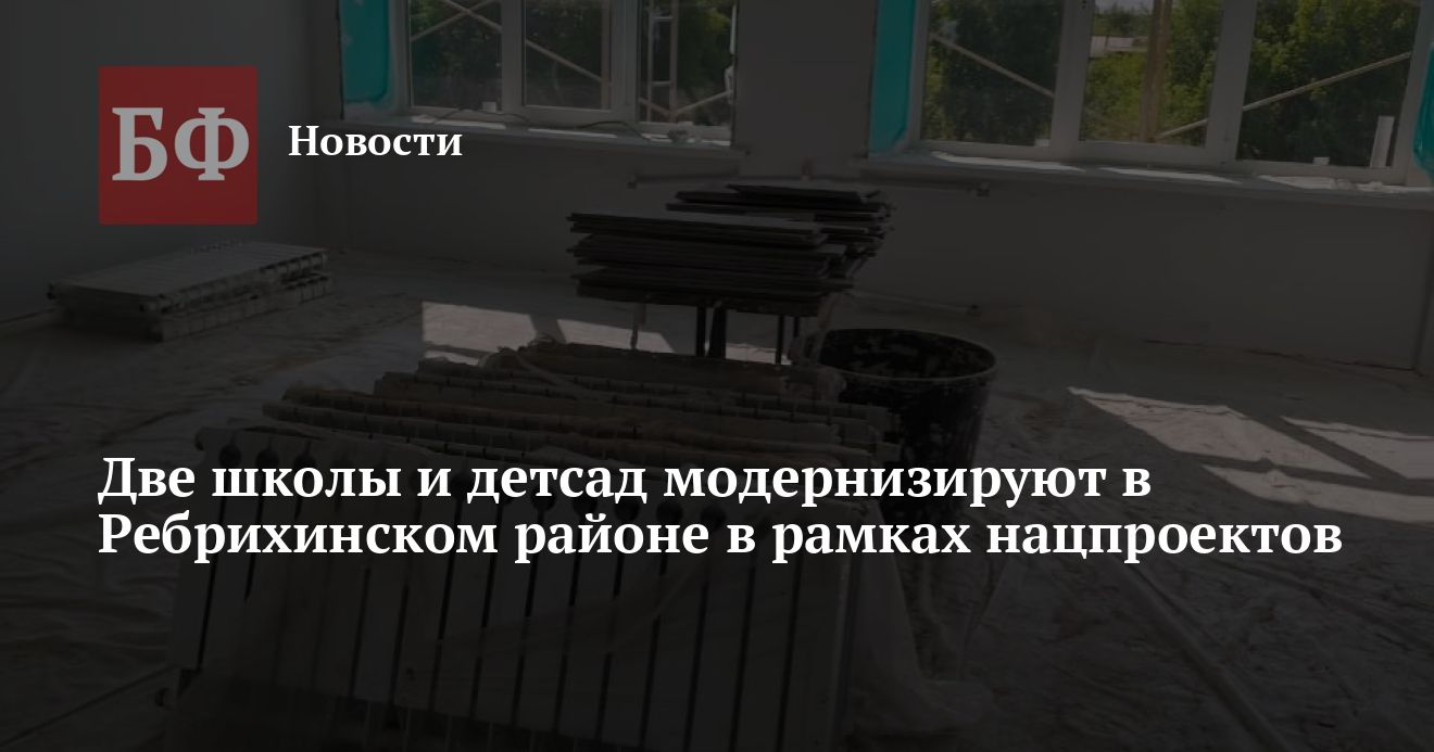 В рамках нацпроекта «Молодежь и дети» обновляют школы в селах Зеленая Роща и Рожнев Лог, а в рамках нацпроекта «Семья» идет капитальный ремонт с двухлетним циклом в ребрихинском детском саду «Улыбка». Все работы ведутся за счет средств федерального и краевого бюджетов.