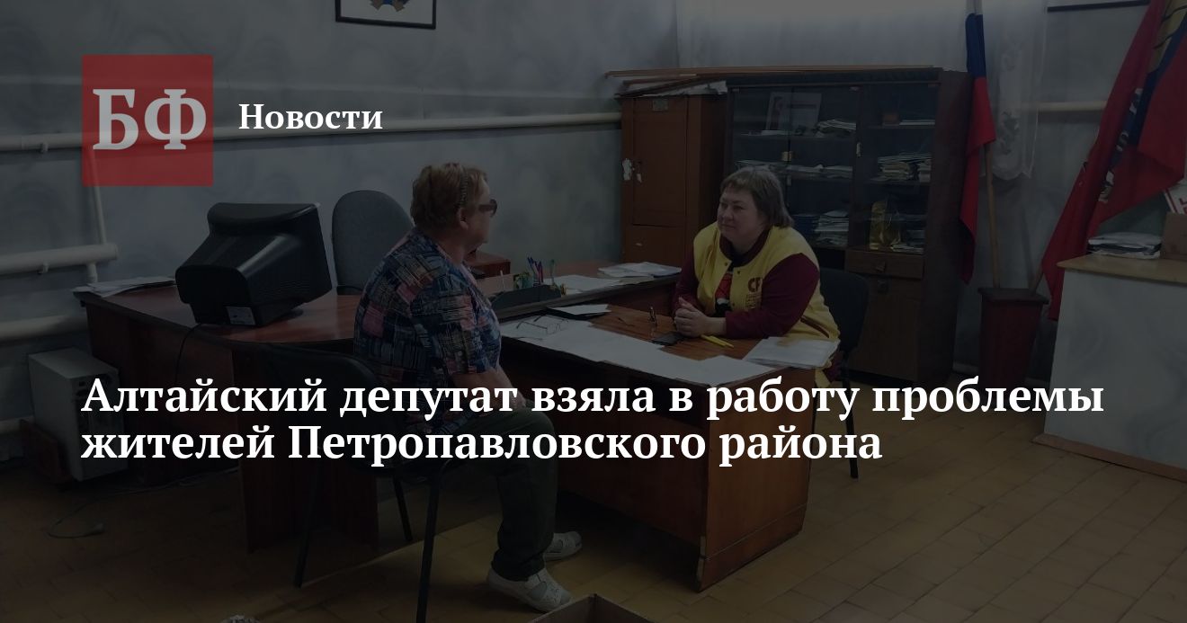 Евгения Боровикова успела побывать в селах Антоньевка, Петропавловское, Алексеевка, Зеленый Дол, и поселке им. Калинина. Помогал народной избраннице руководитель фракции социалистов в Барнаульской городской Думе Захар Торычев. Местные жители озвучили широкий спектр проблем. Например, владелец здания магазина в райцентре столкнулся с проблемой «захвата» его помещения. С 2023 года по договору аренды он сдавал площади местному предпринимателю. Однако, когда в 2025 году мужчина сообщил о повышении арендной платы, наниматель отказался платить, заявив, что магазин занимает уже другой коммерсант, предположительно, супруга прежнего арендатора. При этом тот, кто занял помещение, работает там без договора аренды и не желает освобождать здание. Мужчина попросил депутата помочь в решении проблемы.
