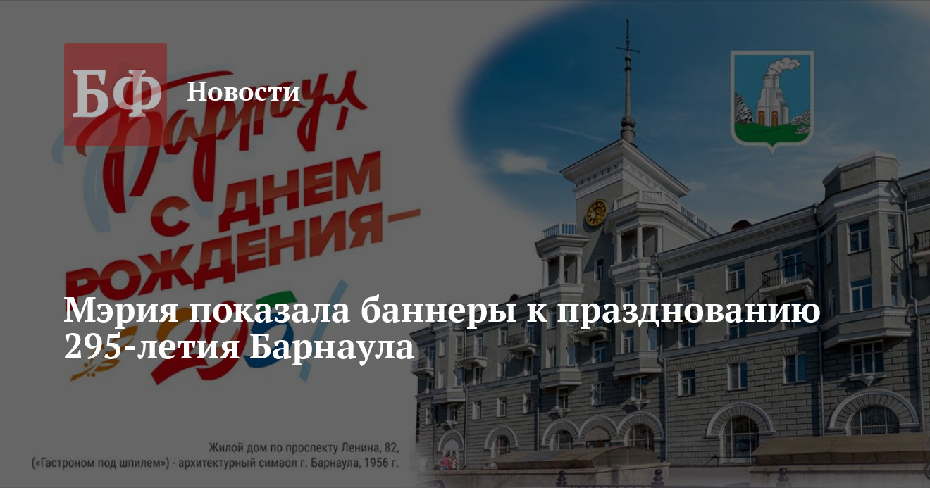 Отметим, что ранее мэрия анонсировала праздничные мероприятия, которые пройдут во время празднования 295-летия Барнаула. 27 и 28 августа пройдут вручение наград городской администрации и открытие обновленной городской доски почета «Слава и гордость Барнаула». 29 августа в «Титов Арена» состоится открытие IV Сибирского фестиваля духовых оркестров «Звуки праздничного марша» с участием коллективов из Новосибирска, Кызыла, Абакана, Новокузнецка, Луганска, Барнаула».