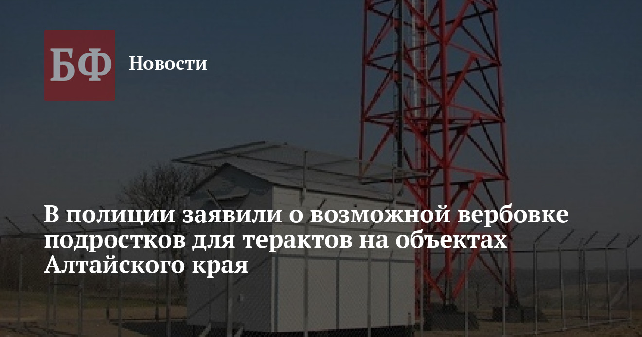 Сотрудники правоохранительных органов задержали двоих подростков, которые фотографировали базовые станции операторов сотовой связи в Алтайском крае. Как сообщили в администрации Михайловского района со ссылкой на полицию, предположительно, в дальнейшем злоумышленники планировали привлечь детей к диверсиям и террористическим преступлениям на этих объектах.
