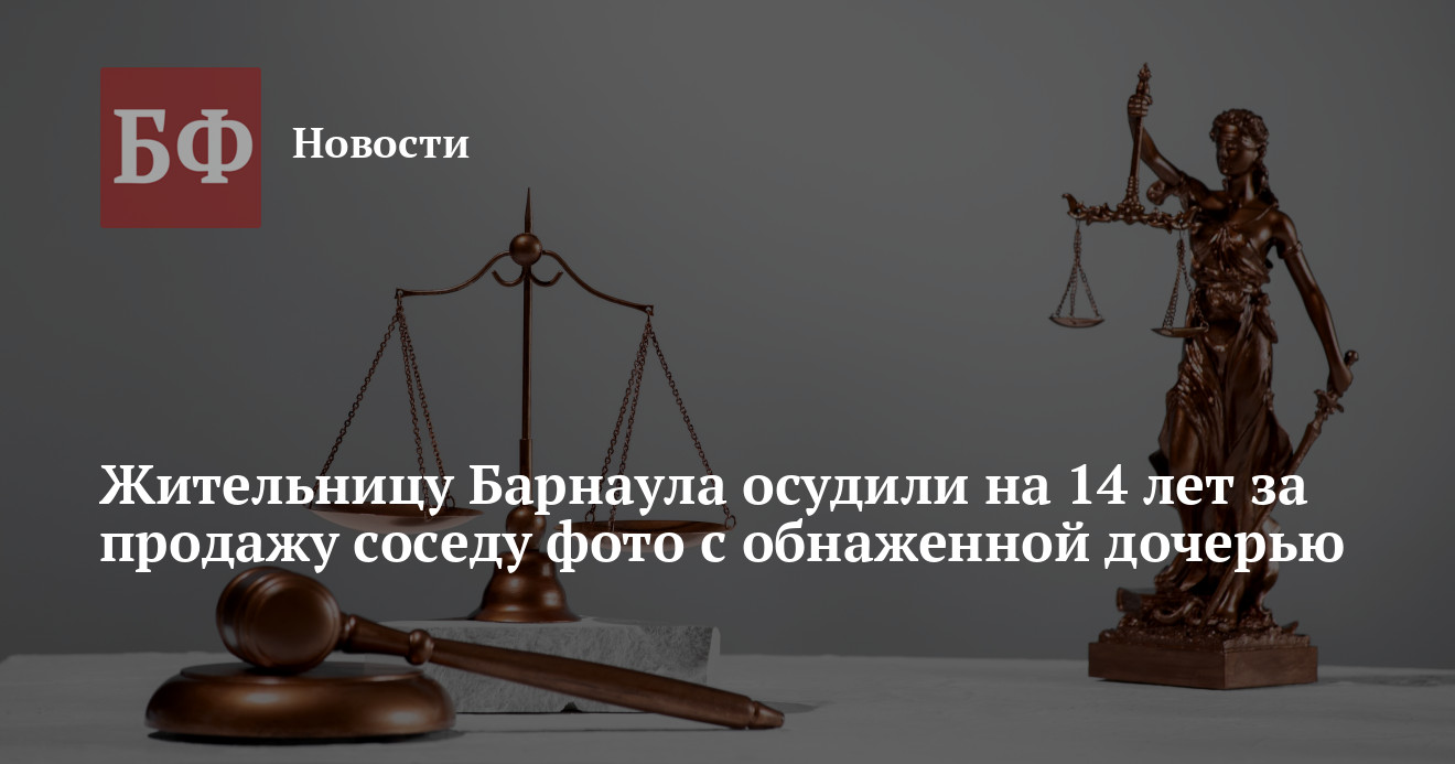 Суд вынес приговор жительнице Барнаула и ее соседу за пересылку ему фотографий обнаженной несовершеннолетней дочери. Злоумышленница была приговорена к 14 годам лишения свободы в колонии общего режима. Ее сосед получил 16 лет строгого режима, сообщает пресс-служба СУ СКР по Алтайскому краю 7 августа.