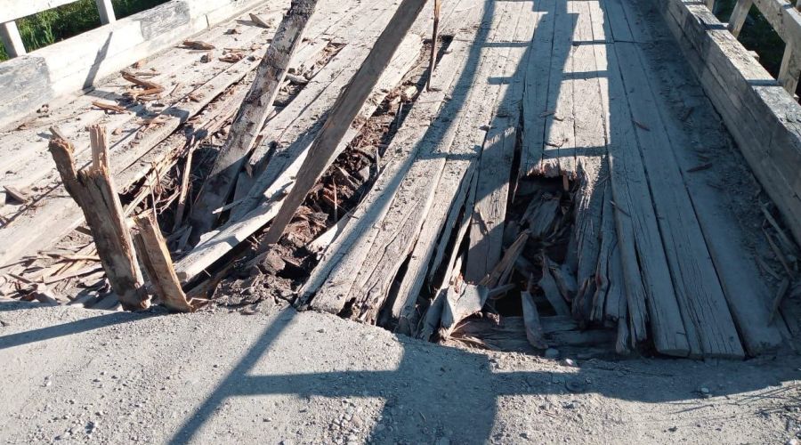 На автомобильной дороге Соузар – Банное Усть-Коксинского района (км 4+692) частично разрушились конструкции поперечного и продольного настила моста через реку Протока. Подрядная организация указала, что это произошло из-за проезда неустановленного тяжеловесного грузовика.