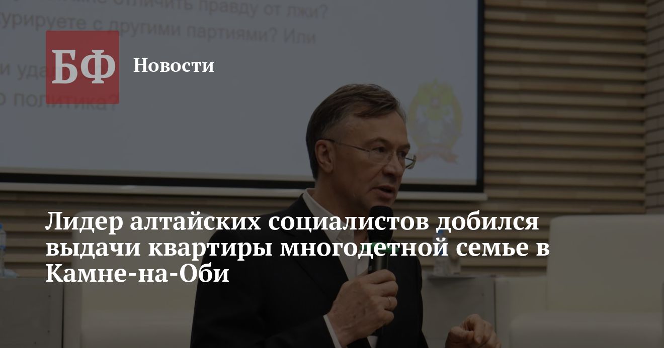 В связи с этим надзорный орган предъявил к администрациям муниципалитетов исковое заявление. В итоге суд обязал чиновников предоставить семье жилье. Затем лидер алтайских социалистов еще дважды обращался в правительство региона, чтобы жители Каменского района получили обещанную квартиру. В результате бюджету муниципалитета дополнительно направили 5,5 млн рублей. В текущем году власти добавили еще полмиллиона рублей на покупку жилья.