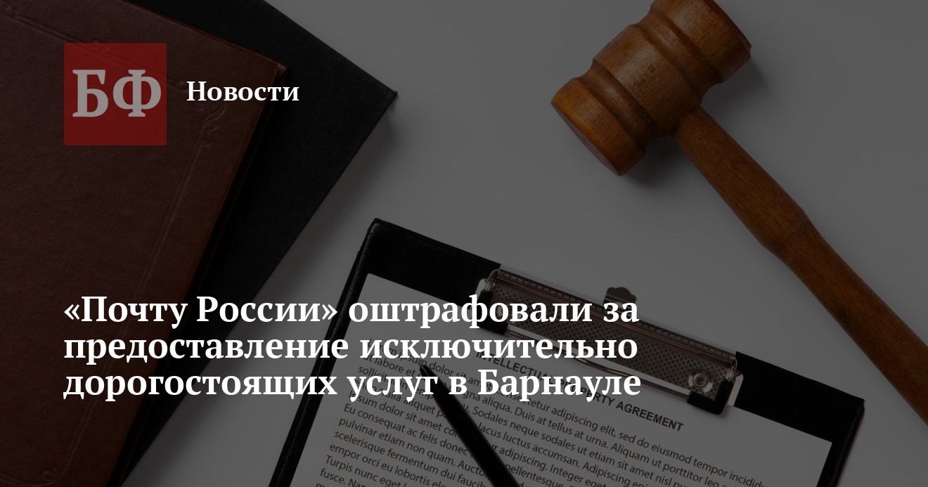 Антимонопольный орган обязал АО «Почта России» выплатить штраф в размере 100 тысяч рублей за навязывание более дорогих услуг жителям Барнаула. Об этом сообщили в пресс-службе УФАС по Алтайскому краю.