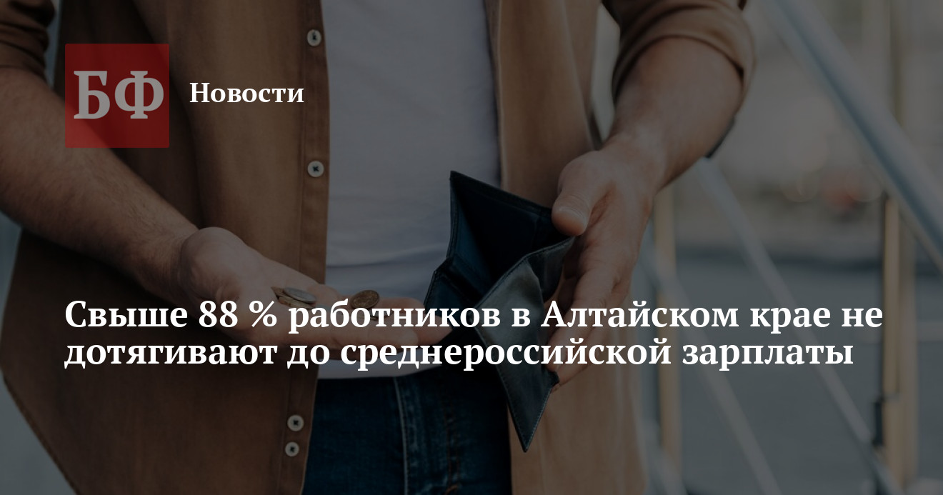 В Алтайском крае лишь 11,5 % работников имеют зарплату выше средней по России. В силу этого показателя регион оказался в числе антилидеров в рейтинге субъектов по доле работающих с высокой зарплатой, сообщают РИА «Новости».