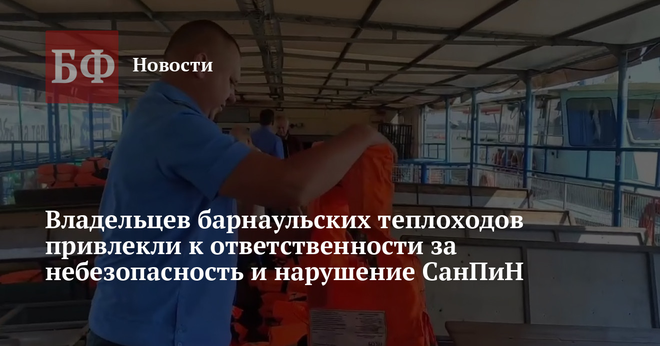 В результате транспортная прокуратура внесла руководителям ООО «Барнаульский речной порт» и ООО «Барнаульский речной флот» представления об устранении нарушений закона, в отношении должностных лиц возбуждены административные производства по ч. 1 ст. 14.8 КоАП РФ (нарушение иных прав потребителей), ст. 11.13 КоАП РФ (нарушение правил выпуска судна в плавание или допуск к управлению судном лиц, не имеющих соответствующего диплома (свидетельства, удостоверения), ч. 1 ст. 14.43 КоАП РФ (нарушение исполнителем требований технических регламентов), ст. 11.10 КоАП РФ (нарушение правил обеспечения безопасности пассажиров на судах водного транспорта).