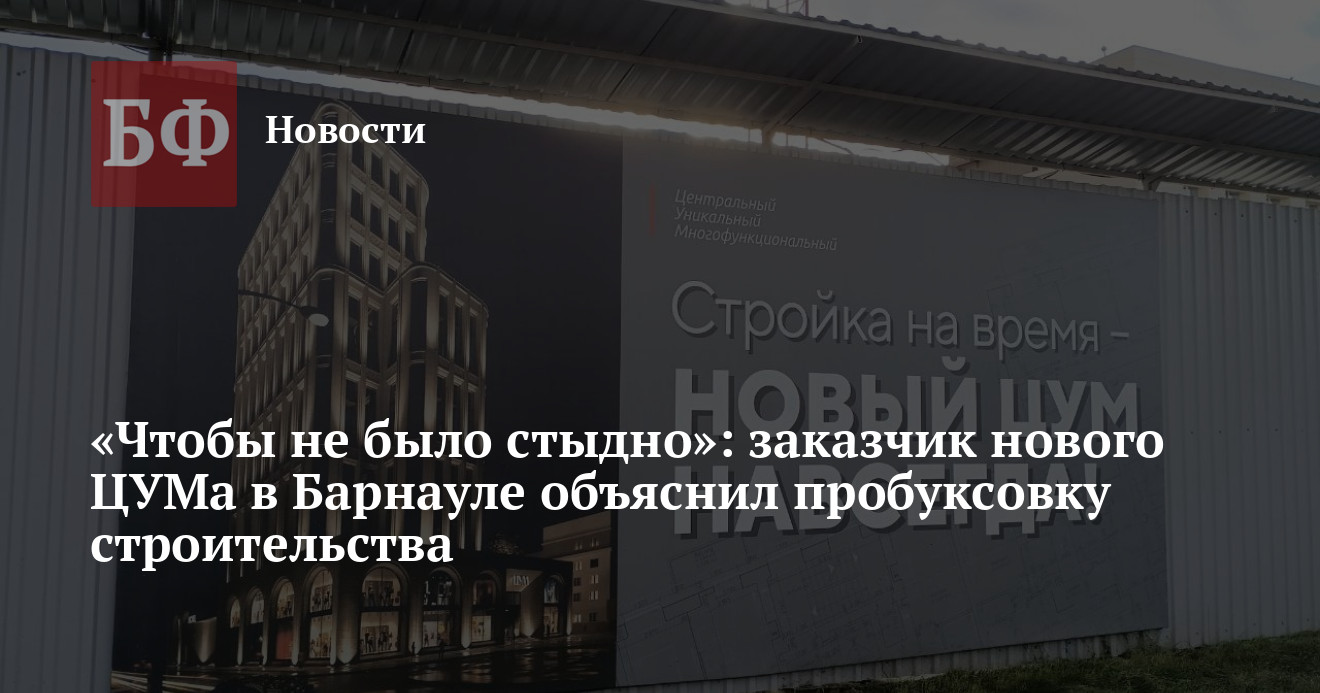 В компании «Центрум», которая выступает заказчиком строительства нового здания ЦУМа в Барнауле, рассказали о причинах «затишья» на объекте. Ранее барнаульцы отмечали низкие темпы работ и предполагали, что они и вовсе могут быть приостановлены. По информации компании, заминка в возведении монолита вызвана необходимостью изменения некоторых технических решений, сообщил «Алтайский портал недвижимости».
