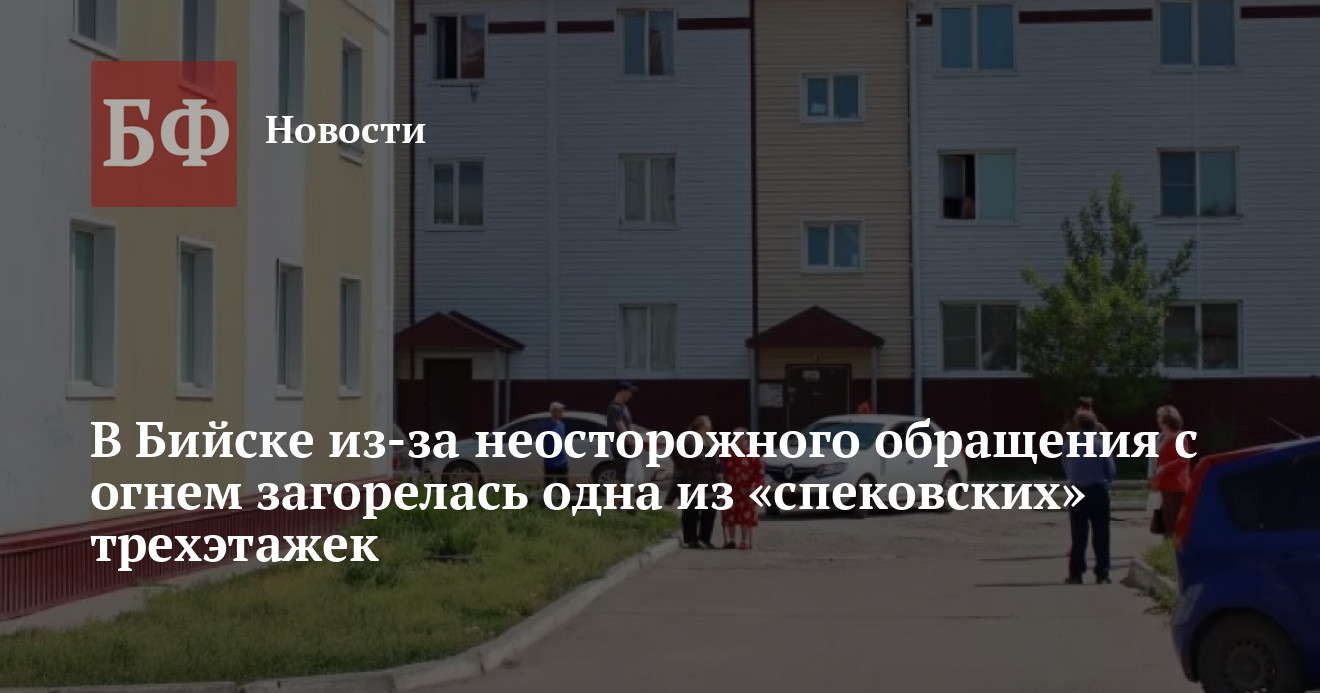 26 августа вечером в Бийске по улице Спекова, 8/1 возник пожар в расселенном здании, сообщили в управлении ГОЧС и ПБ администрации города. Многоэтажка в числе других была построена в 2012 году в рамках кадровой адресной программы по переселению граждан с вопиющими нарушениями, в результате чего было возбуждено несколько уголовных дел. Как уточнили «Банкфаксу» в краевом МЧС, причиной пожара стало неосторожное обращение с огнем.