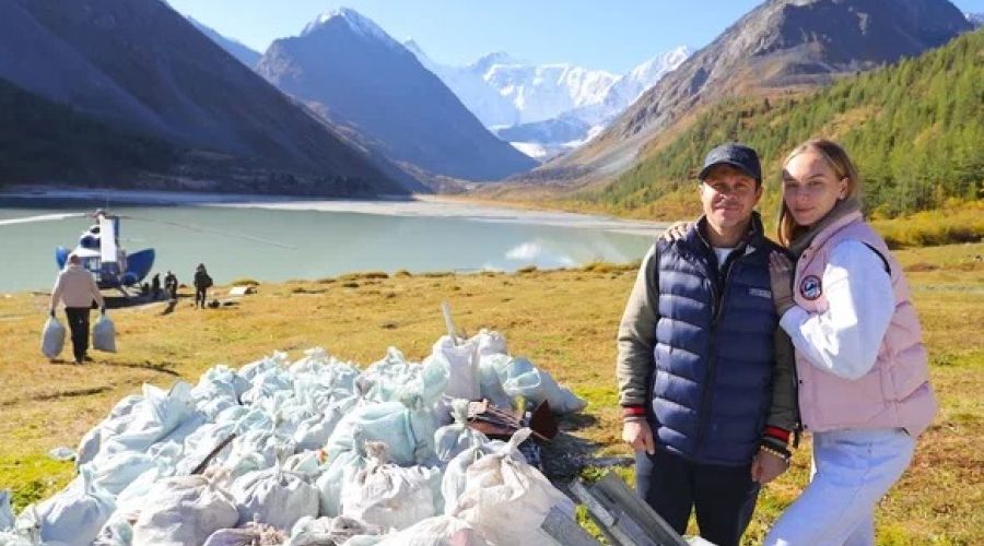 В Республике Алтай в пятый раз провели экологическую акцию по очистке горы Белуха от мусора, оставленного отдыхающими. В ней приняли участие эковолонтеры движения «Мусорная лавина», сотрудники компании «Эвалар», а также актер Павел Деревянко вместе со своей женой Зоей Фуць. Добровольцы вывезли свыше двух тонн отходов, сообщили представители фармкомпании.