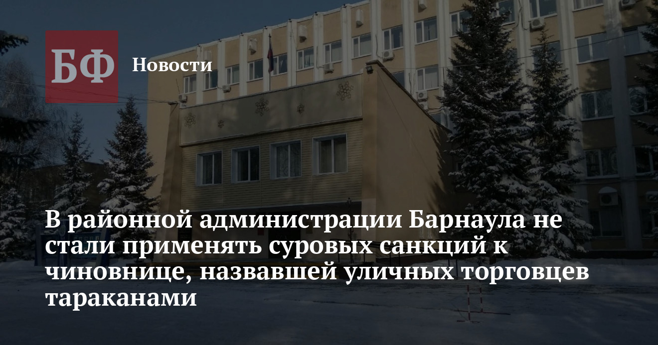 Администрация Ленинского района Барнаула ограничилась проведением разъяснительной беседы с сотрудницей, которая оскорбительно высказалась в адрес горожан. Чиновница опубликовала в личной истории в мессенджере кадры с «зачисткой» незаконного рынка, назвав торговцев «тараканами, которые спасают свой хлам». Поведение чиновницы вызвало общественный резонанс.