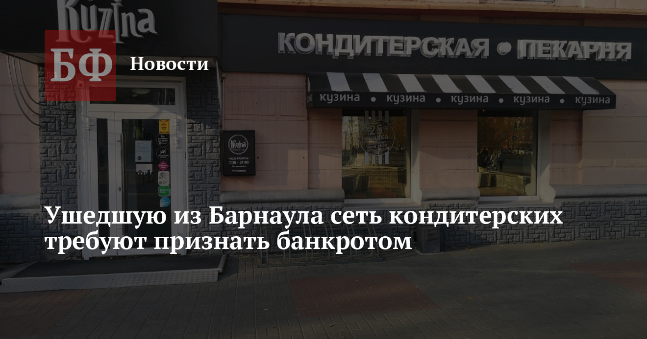 Налоговая инспекция требует инициировать процедуру банкротства крупной сети кондитерских «Кузина», филиал которой много лет работал в Барнауле. Сообщение об этом опубликовано на портале Федресурс. В прошлом году стало известно о том, что единственная «сладкая» точка компании в краевом центре закрылась без объяснения причин.