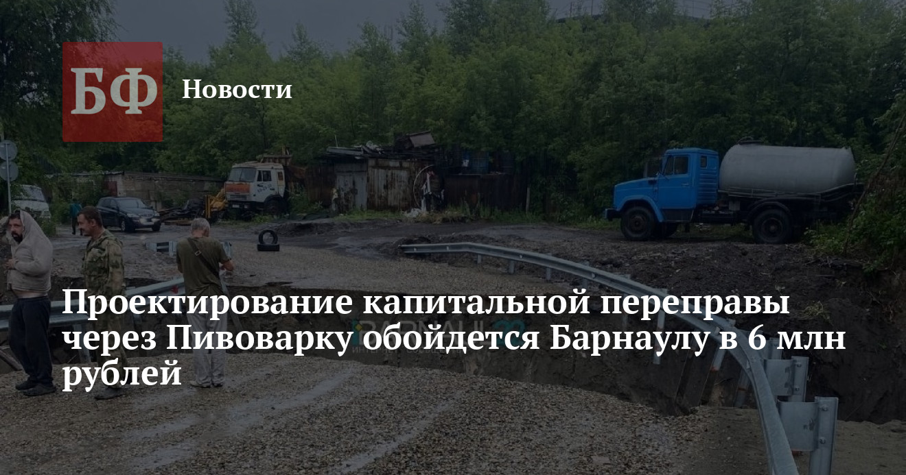 16 сентября комитет по дорожному хозяйству и транспорту Барнаула заключил контракт с ООО «Гипалтай» на разработку проектно-сметной документации для строительства капитального моста через реку Пивоварка в Железнодорожном районе города. Подрядчик запросил за свою работу более 6 млн рублей, сообщается на портале ЕИС «Закупки». Прежняя переправа рухнула в непогоду летом 2025 года.