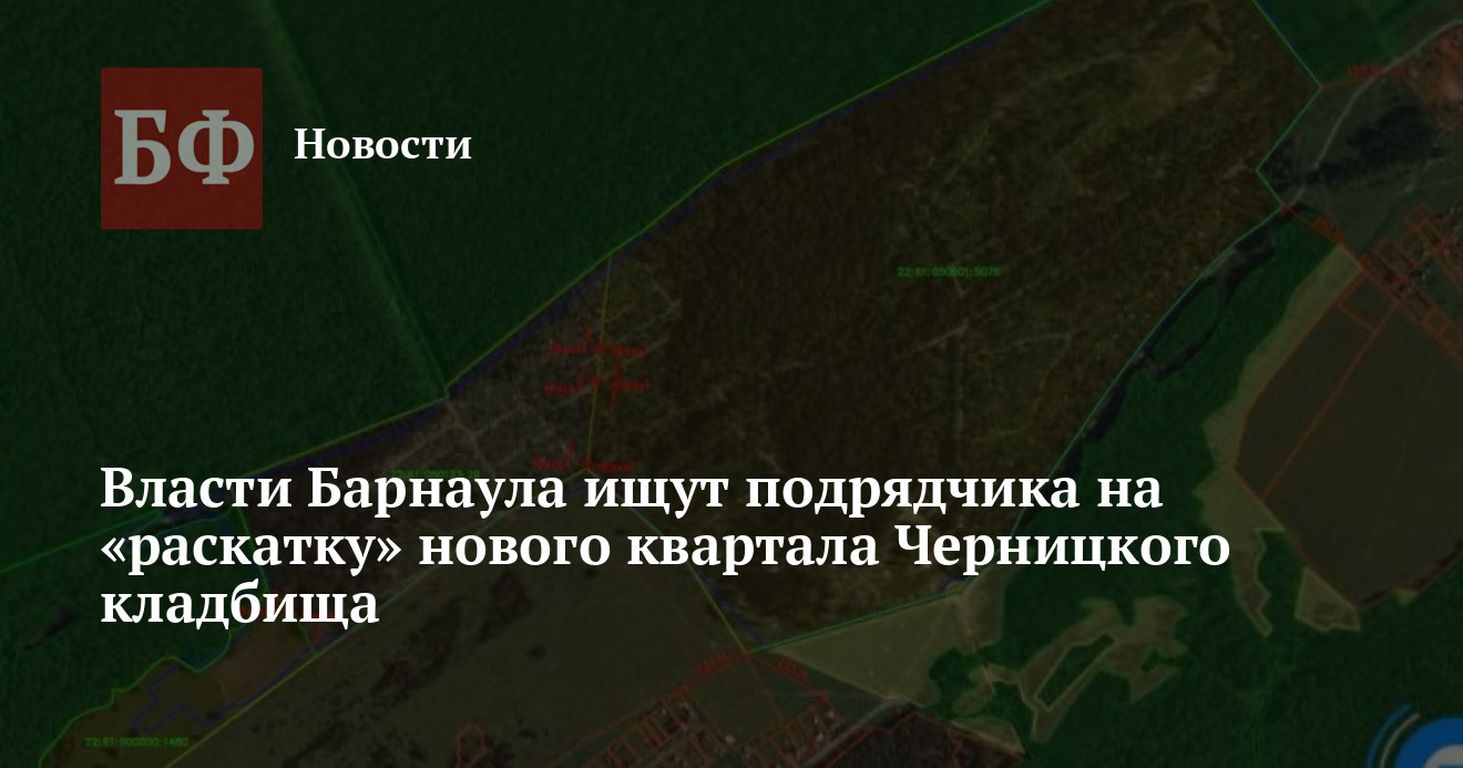 МБУ «Специализированная похоронная служба» Барнаула объявило тендер по поиску подрядчика, который займется благоустройством нового квартала Черницкого кладбища. За эти работы власти готовы заплатить 1,5 млн рублей. Таким образом, мэрия активно готовится к расширению могильника, против которого выступают местные жители.