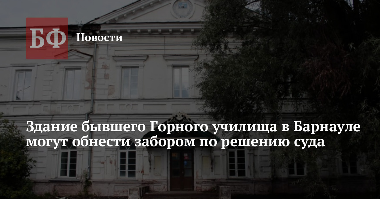 Арбитражный суд рассматривает иск от администрации Центрального района Барнаула к МТУ Росимущества по Алтайскому краю и Республике Алтай с требованием установить защитное ограждение по периметру здания бывшего Горного училища в Барнауле. Материалы дела опубликованы в судебной картотеке.