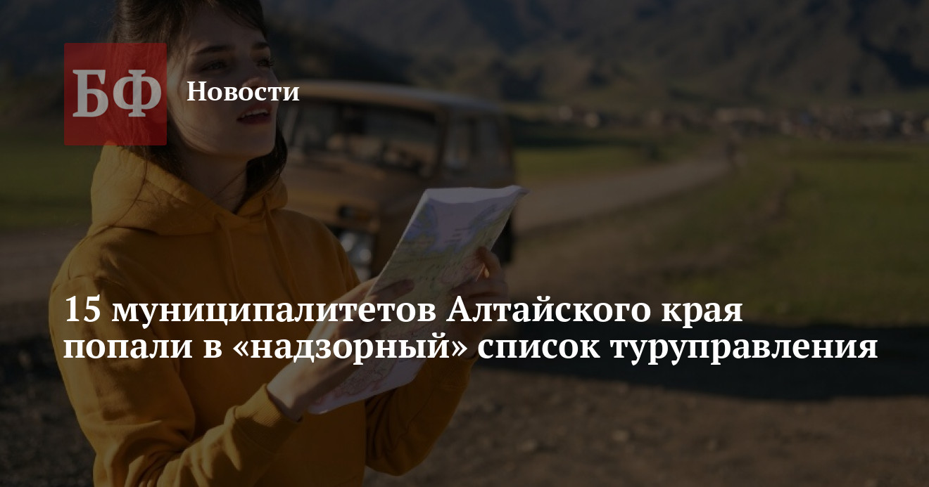 Согласно приказу за подписью начальника управления Алтайского края по развитию туризма и курортной деятельности Александра Барышникова, указанный перечень создан в регионе в соответствии с требованиями федерального законодательства. Из документа следует, что постоянный надзор в сфере туриндустрии будет проводиться в следующих муниципальных образованиях: Барнаул, Белокуриха, Бийск, Змеиногорск, Алтайский, Бийский, Завьяловский, Залесовский, Косихинский, Курьинский, Романовский, Смоленский, Советский, Солонешенский, Чарышский районы.