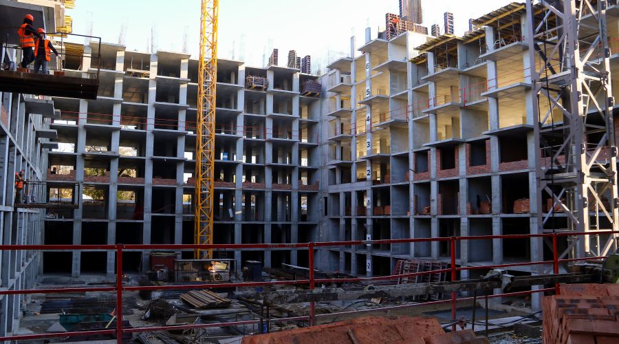 Застройщик возводит дом-квартал Меланж в Барнауле по адресу Сизова, 20. На сегодняшний момент уже возведен монолитный каркас девяти этажей из 11 запроектированных, ведется кирпичная кладка, готовится к возведению монолитный паркинг. Ход и качество строительства оценили профессионалы рынка, посетившие площадку.