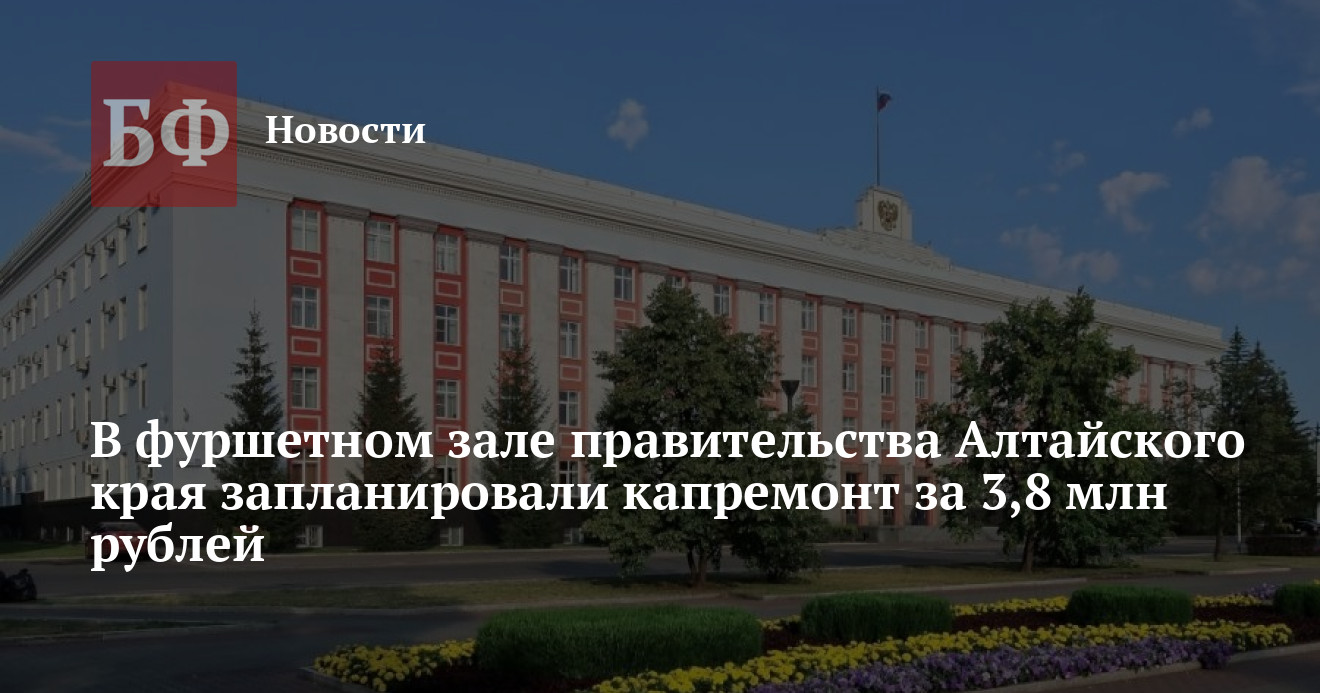 КГБУ «Учреждение по содержанию административных зданий» заказало выполнение капитального ремонта помещения столовой правительства Алтайского края в Барнауле. Максимально власти готовы заплатить за оказание услуги более 3,8 млн рублей, сообщается на портале ЕИС «Закупки».
