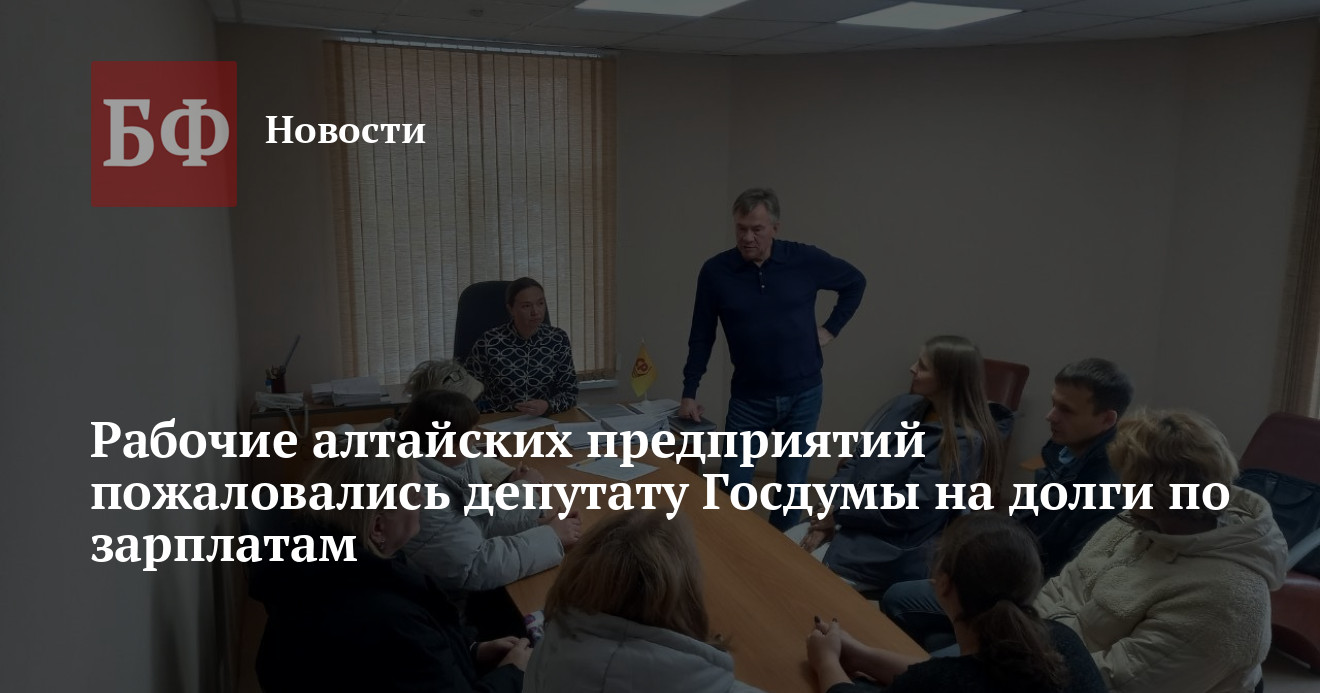 Сумма общей задолженности по зарплате перед примерно 200 сотрудниками обеих организаций превышает 45 млн рублей, сообщают алтайские социалисты. Заявители обратились к Александру Терентьеву с просьбой оказать содействие в возврате денег, включая компенсации за просрочку платежей. Депутат взял в работу обращения горожан.