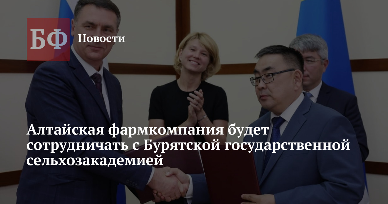 Отмечается, что подписи поставили исполнительный директор алтайской компании Владимир Хлунов и ректор БГСХА Бэликто Цыбиков. Соглашение о стратегическом партнерстве направлено на совместные научные изыскания в области технологий выращивания лекарственных растений.