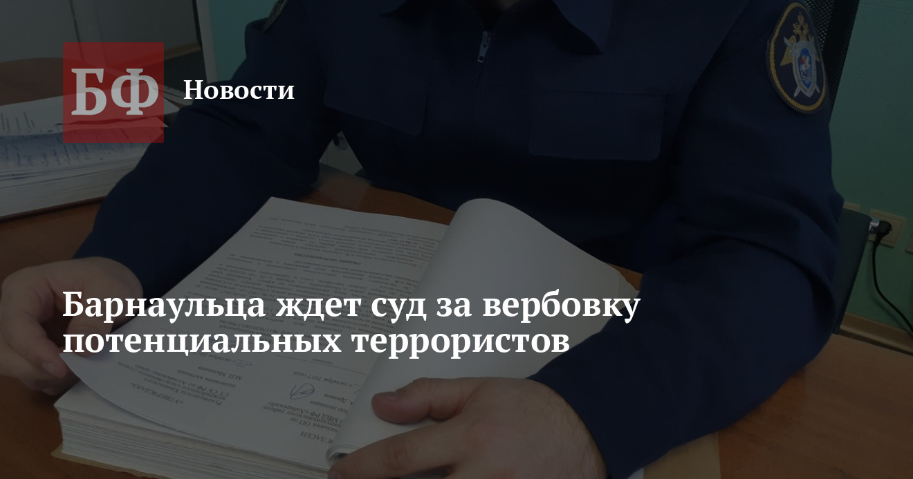 Новоалтайский межрайонный следственный отдел завершил расследование уголовного дела в отношении барнаульца. Ему вменяют ч. 1.1 ст. 205.1 УК РФ (склонение, вербовка и иное вовлечение лица в совершение преступлений, предусмотренных ст. 205, 205.3, 205.4 УК РФ, а также подготовка лица в целях совершения указанных преступлений), ч. 3 ст. 30, ч. 1 ст. 205.4 УК РФ (покушение на создание террористического сообщества, если при этом преступление не было доведено до конца по независящим от этого лица обстоятельствам). Уголовное дело направлено в суд для рассмотрения по существу.