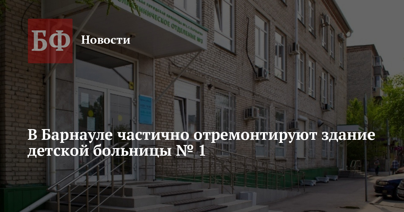 Детская городская больница № 1 Барнаула заказала выборочный капитальный ремонт здания одного из своих поликлинических отделений. По данным сайта госзакупок, начальная цена контракта превышает 8,3 млн рублей.