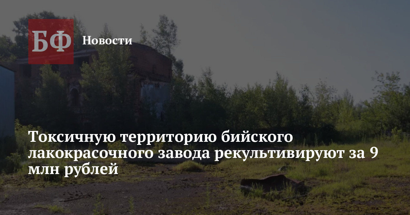 23 сентября управление ЖКХ, благоустройства и дорожного хозяйства Бийска опубликовало тендер на поиск подрядчика для рекультивации территории бывшего лакокрасочного завода по улице Красногвардейской, 57, которая сильно загрязнена химическими веществами. По условиям контракта, подрядчик обязан провести работы по восстановлению почвы на этой территории. Начальная максимальная цена контракта составила более 9 млн рублей. Завершить работы нужно до 10 декабря этого года.