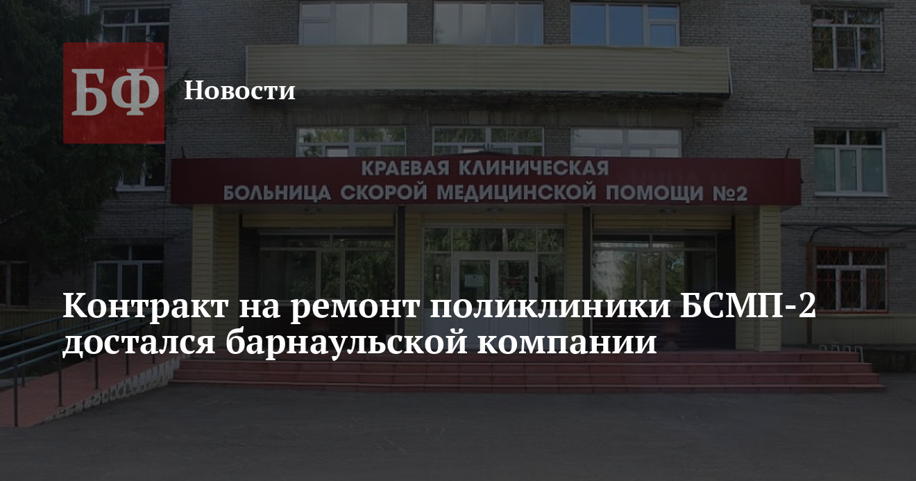 Барнаульский фирма ООО «Стройпрофи» заключила контракт с Краевой клинической больницей скорой медицинской помощи № 2 (БСМП-2) на капитальный ремонт ее поликлиники на улице Малахова, 51 в Барнауле. По данным сайта госзакупок, цена договора превышает 101 млн рублей.