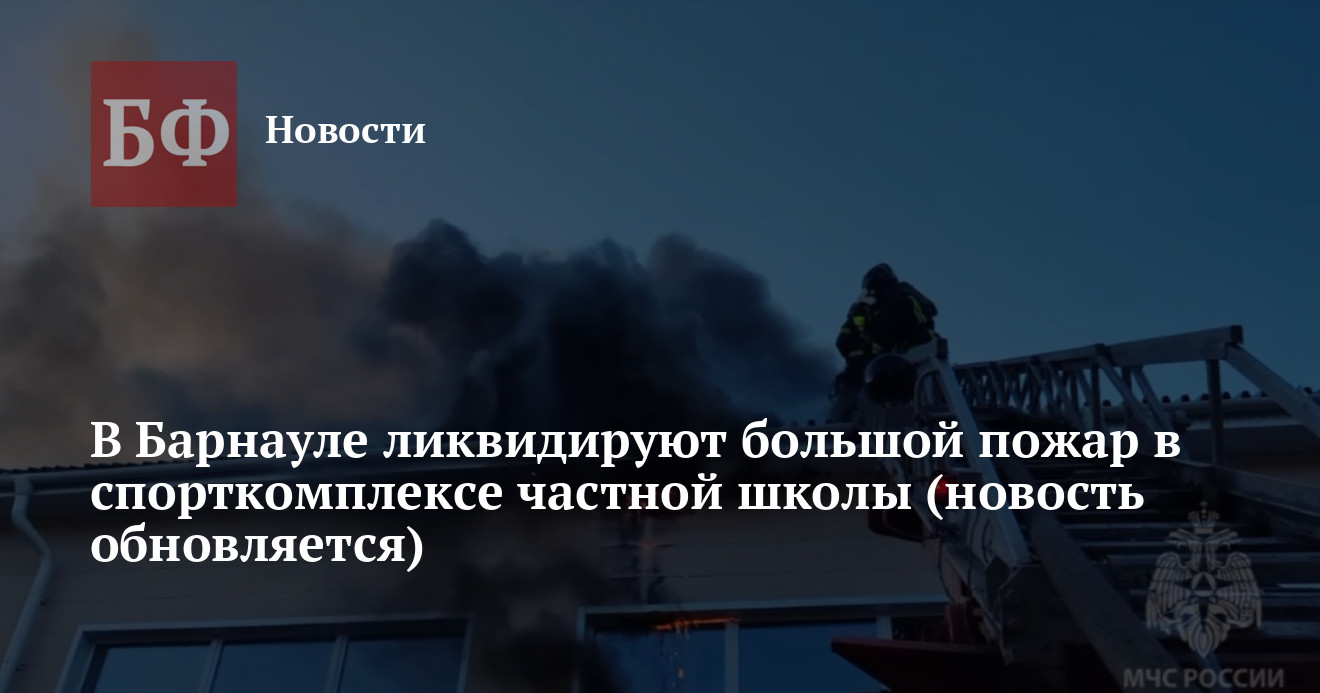В здании спорткомплекса частной Барнаульской классической школы на Змеиногорском тракте произошел большой пожар. Как сообщили в ГУ МЧС по Алтайскому краю, площадь возгорания составила 600 кв. м.