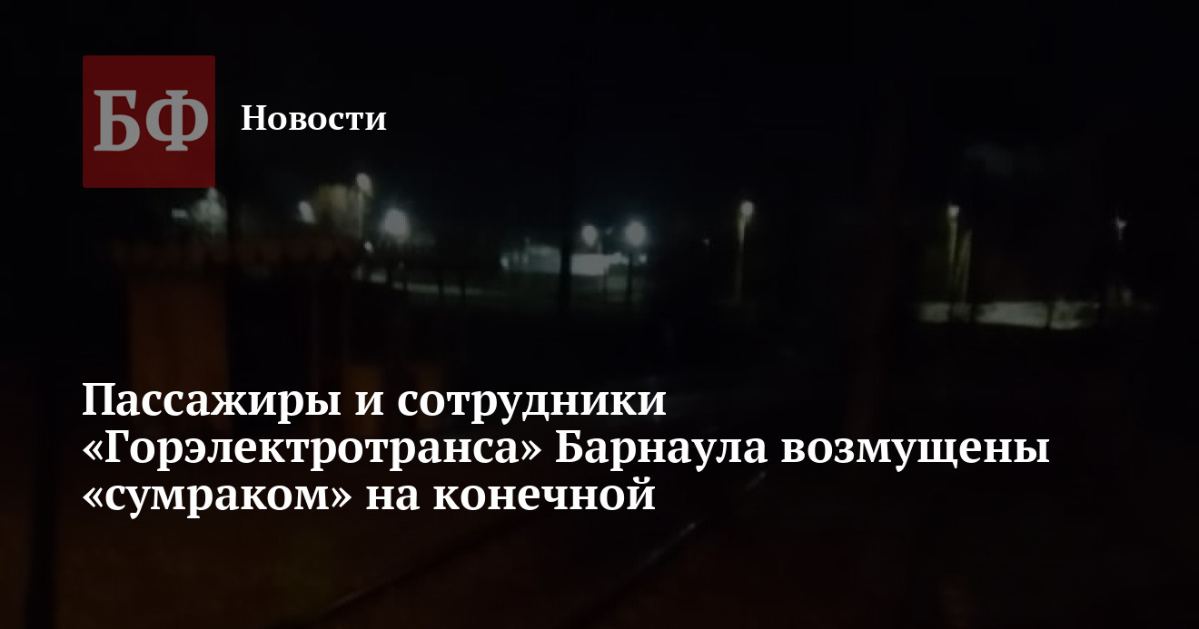 Между тем в правилах технической эксплуатации трамвая пункт 4.5.7 гласит, что «территория конечной станции в темное время суток должна быть освещена». «Соответственно ГЭТ должен обеспечить освещение конечной станции или сделать все возможное для реализации этих требований. Однако здание диспетчерской было демонтировано и освещение отключено. Так кто все-таки должен обеспечить освещение на конечной станции? «Барнаулгорсвет» или МУП «Горэлектротранс». Впрочем, простым пассажирам все равно. Главное, чтобы было светло на конечной станции», - заключили граждане.