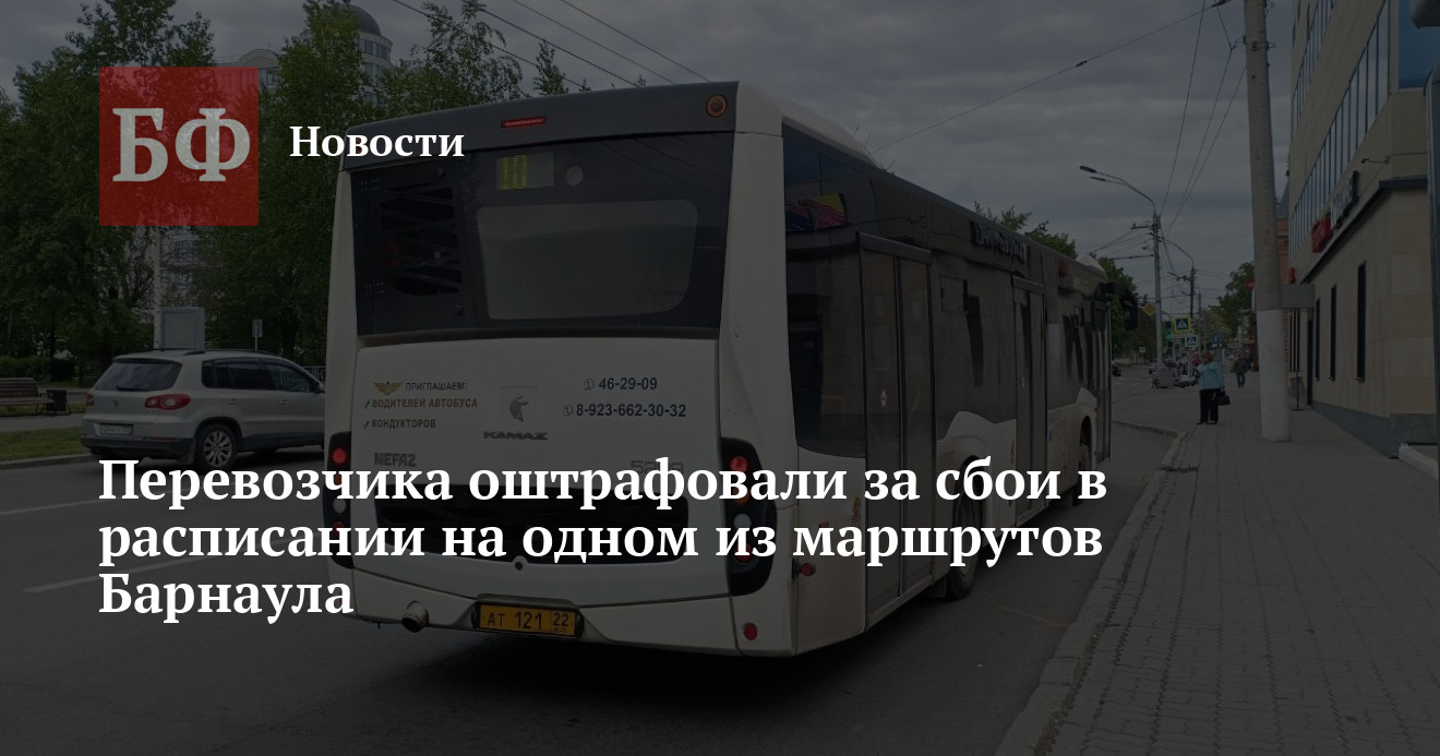 Комитет по дорожному хозяйству и транспорту администрации Барнаула направил требование об оплате штрафа перевозчику, который обслуживает автобусный маршрут № 110. Как сообщили в мэрии, претензии связаны с несоблюдением расписания. На проблему обращала внимание жительница города в обращении, направленном в Центр управления региона (ЦУР).
