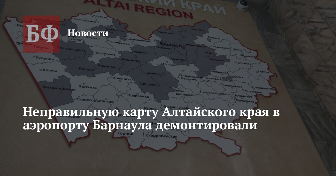 В барнаульском аэропорту им. Г. С. Титова убрали карту Алтайского края, в которой были найдены ошибки в названиях райцентров муниципалитетов. Об этом сообщили в администрации аэровокзала.