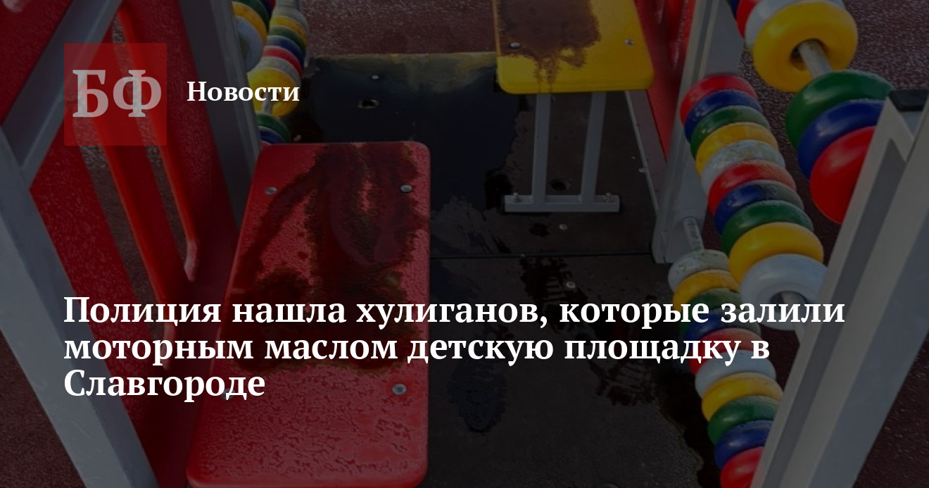 Напомним, что инцидент случился на территории славгородского военного городка. Хулиганы «резвились» на площадке, возведенной в рамках нацпроекта «Инфраструктура для жизни» федерального проекта «Формирование комфортной городской среды». Моторным маслом залили горки, качели и другое игровое оборудование.