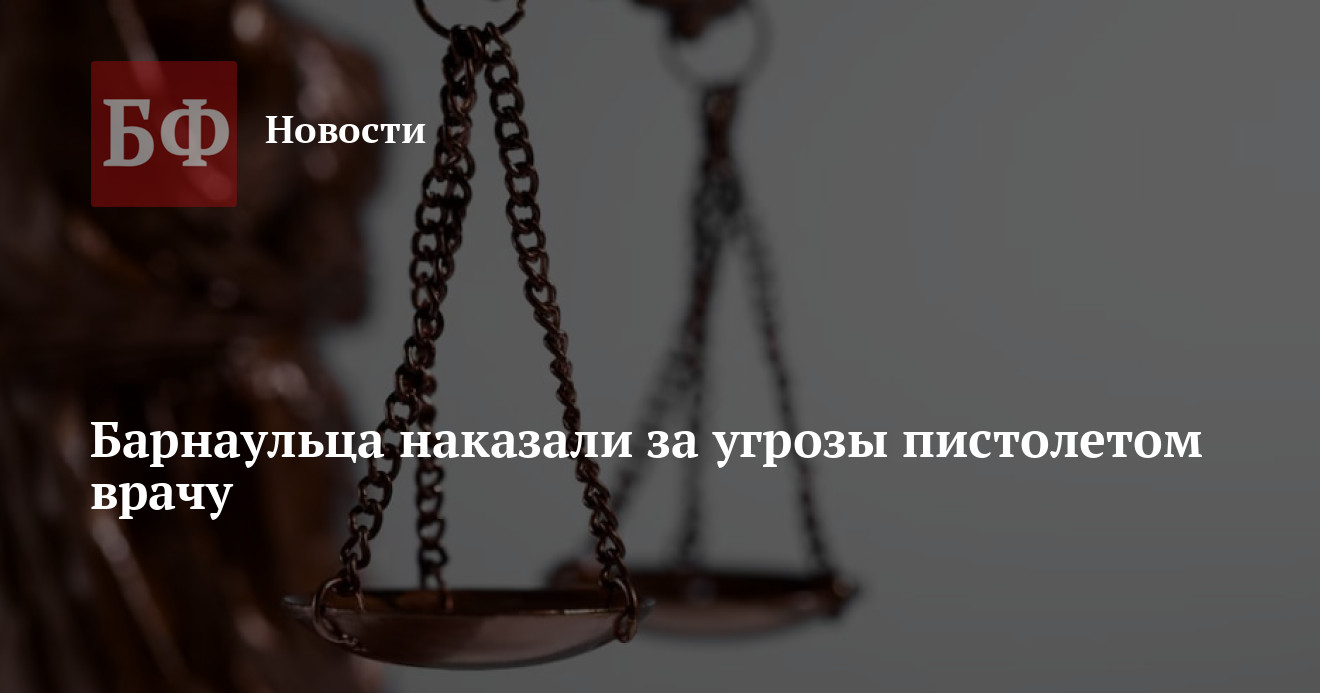 Установлено, что житель Барнаула, находясь в состоянии алкогольного опьянения, вызвал скорую помощь. Когда медик прибыла, мужчина направил на нее пневматический пистолет из-за внезапно возникшей неприязни. Так как пациент вел себя агрессивно, медработник восприняла угрозу как реальную, опасаясь за собственную жизнь и здоровье. После угроз горожанин прекратил свои действия.