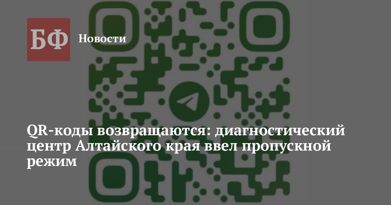 C сегодняшнего дня, 29 октября, в Консультативно-диагностическом центре (ДЦАК) Алтайского края начал действовать пропускной режим для пациентов, что объясняют обеспечением безопасности. Впредь на входе необходимо предъявлять QR-код, сообщается на сайте ДЦАК. В пресс-службе Минздрава Алтайского края пояснили «Банкфаксу», что ДЦАК самостоятельно принял решение о введении пропускного режима, став «первопроходцем».
